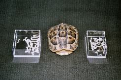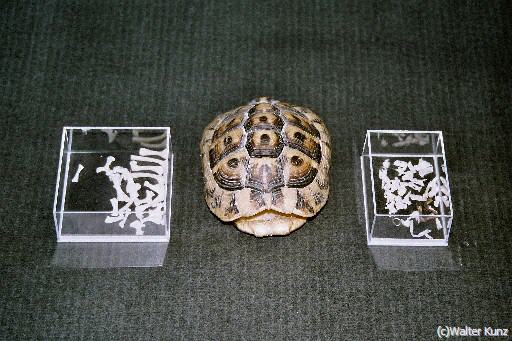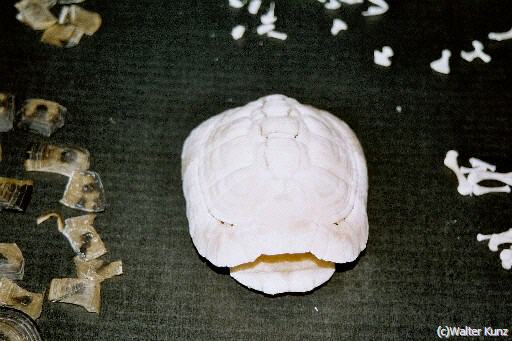 Unter den Hornplatten stetzt sich der Panzer aus Knochenplatten zusammen. |